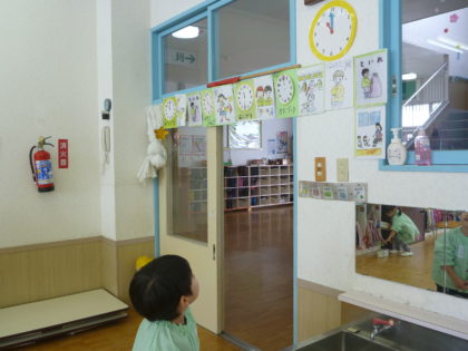 時計を見ながら、自分たちで遊びや生活を進めました。