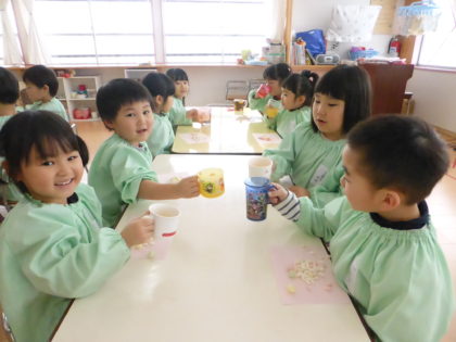ひなまつりには、ひなあられとジュースで乾杯!!